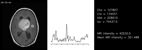 Then we compare the tumor value with the value of the normal brain, and we construct a Normalized Choline value; when it is above 1 it means that there is more choline in the tumor than in the normal brain
